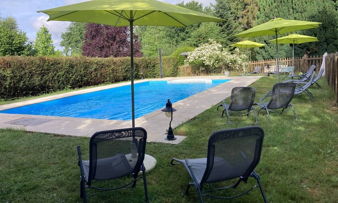 - Detached chalet, wooded grounds 1500 m2, heated swimming pool.animals accepted