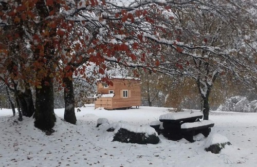 Established in the sector of 1000 ponds, in the Southern Vosges, our tiny house JOY welcomes you up to 5 people (4 adults maximum) to live a moment of unusual relaxation, to rest, to recharge your batteries.