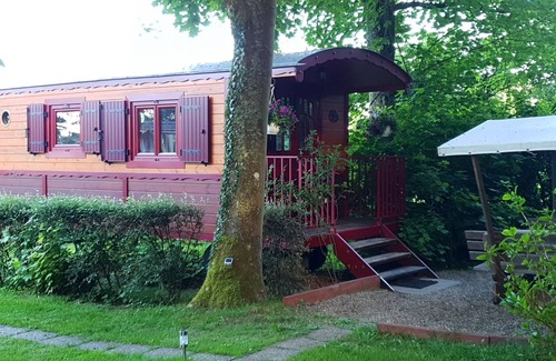 Unexpectedly and surprisingly comfortable, our gîte-trailer, designed for a maximum of 4 people, includes: a bathroom with shower, sink and toilet, a double bed in an alcove, 2 pull-out sofa beds for one person, a small kitchen area with electric hob, fridge, crockery and small appliances (electric coffee maker and kettle, microwave oven).