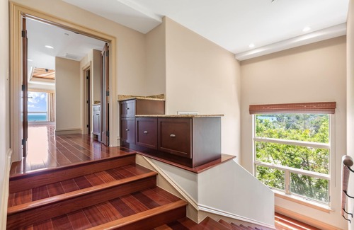 Inside you will find Bali inspired architechture with floor to ceiling window views of the ocean as well. Ample living room and dining room area to entertain guests.