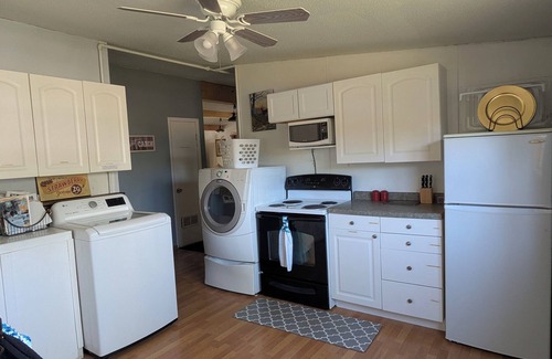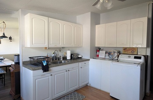 Make yourself at home in this 3-bedroom retreat. This charming house features 1 king bed, 1 queen and a full over queen bunk with pull out trundle, perfect for a group or family getaway. With a cozy living space, fully equipped kitchen and coffee bar. We have wifi and smart TV's. in the home as well.