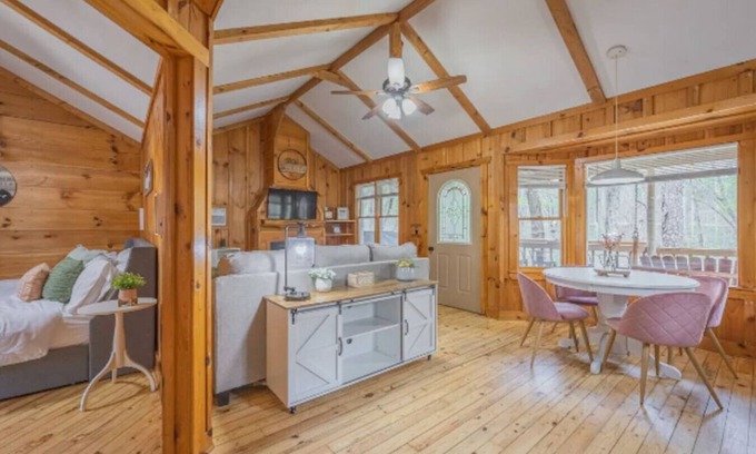 Nestled in the mountains, this retreat has the best of both worlds by also being convenient to town. Located 4 miles to downtown Historic Dahlonega, you'll find boutique shops, dining, galleries and local activities in the Square. Also close to Amicalola Falls State Park, Blood Mountain, Springer Mountain (the beginning of the Appalachian Trail) and so much more! Enjoy all the nearby activities of the Chattahoochee National Forest including tubing, hiking, and biking, or simply find one of the many vineyards and wineries for an afternoon of wine tastings and soaking up the stunning mountain scenery. Kaya, Wolf Mountain, Three Sisters and of course, Cavender Creek Vineyard are must-stops along the Georgia wine highway!