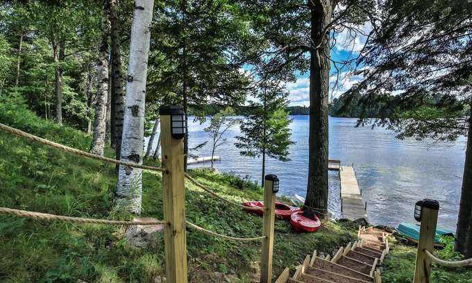 - All-seasons lakefront cabin with dock, wood fireplace, kitchen, kayaks, & AC