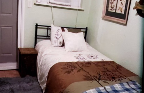 (Directions will take you to main house. Our one-room rental is "209c" Palmway and has private entrance to side of main house) $150 late check out fee. Bathroom is right across court yard and is share.