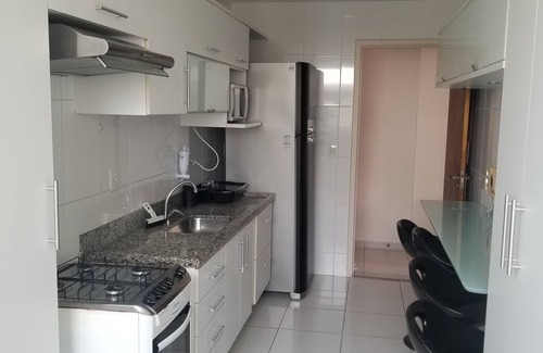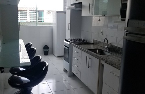 Apartment has 3 bedrooms with customized furniture, Wi-Fi, 3 bathrooms, large living room and kitchen, balcony in "L" connecting the living room and two bedrooms with balcony furniture and screened. It has 2 parking spaces and lift. Building with 24 hour doorman. Suite with Queen and air conditioning. Other rooms with double sofa bed or Berth and fan. Television 47 'with' Pay TV 'and Home in the living room and Television 42' with 'Pay TV' in one of the bedrooms.