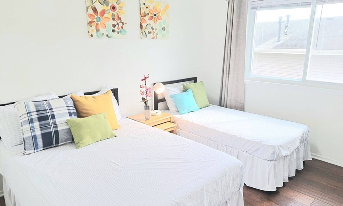 Bright and peaceful 2nd floor unit. Master bedroom comes with a queen size bed. Second bedroom has two beds: twin and full size. Unit is equipped with USB-A & USB-C charging port. Living room has a 65 inch Sony smart TV. Bathroom was recently remodeled. Kitchen is FULLY STOCKED with everything you need to cook. We provide a digital air fryer, toaster, blender, Keurig k-cup coffee maker, 12-cup coffee maker, electric kettle, crock-pot, dishes, bowls, pots and pans, spices, cooking oils, and much more!