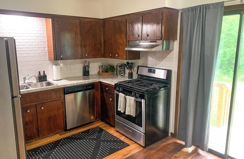This charming and updated retreat ensures a peaceful and private experience for your group, with the added assurance of no shared spaces with the duplex's other half.