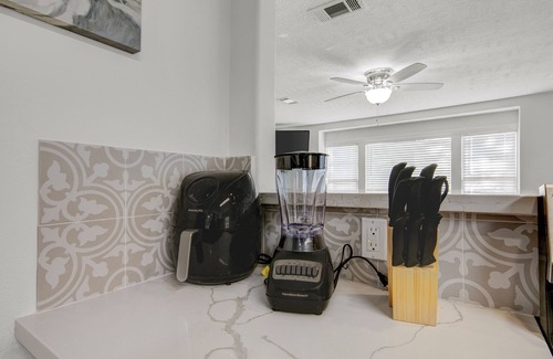 Spacious 5-bedroom home in Groves perfect for large groups or families! Enjoy 2 comfortable living areas and 2 kitchens, including a fully stocked main kitchen with everything you need. Each room has a smart TV for your entertainment. Towels and linens are provided for your convenience. Relax in the fenced yard, fire up the BBQ pit, and make yourself at home in this comfortable, well-equipped rental.