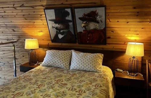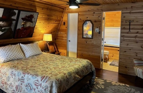 Classic updated A-frame. Warm wood interiors, bedroom downstairs and second loft bedroom with it's own bath. Small but full kitchen. Lovely lake views, especially sunsets. Hammock and hammock chair on the deck. Lots of wild birds and occasional raccoons come to visit. Use of W/D in unfinished basement is available as are two inflatable kayaks.