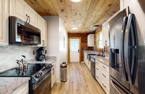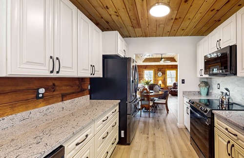 Boasting warm wood finishes, an open layout, and a fully equipped kitchen - you'll adore the home's comfort and effortless flow. The living room boasts a soft sofa, fireplace, and large smart TV whereas the kitchen has all-new appliances and granite countertops. In the bedrooms, you'll be delighted to discover soft linens, central air, and smart TVs. The bathrooms are just as impressive with their gleaming countertops, large vanities, and respective showers/tubs. Additional on-site amenities include a private washer/dryer and a private deck.