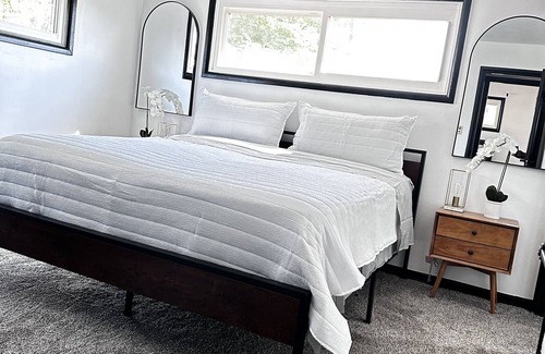 Enjoy this modern version of a bohemian styled home. The updated home is a mix of old and new. Each bedroom are styled with blackout Roman blinds for the perfect night sleep. The owners bedroom has a split king bed and a small yet sufficient owners bathroom . Bedroom 2 is designed with a emerald king-size bed and a roll away bed if needed. Bed room 3 has a plush queen size bed.. Enjoy the large kitchen with great for cooking large meals. When remodeling the home we maintained some of its 1960's feel with its original toggle soft switch lights. and the laundry chute in the hall bathroom. When you are ready to explore some fun in Cape Girardeau, know that this house is a hop skip and a jump from Cape Splash water park and Andy’ s walk up ice cream shop and much more