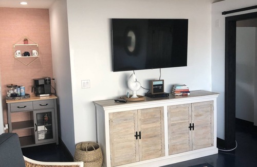 2 bedroom 1 bath open living and kitchen with beautiful floating shelves and great views of the ocean. 30 steps away from beach access. Where you can enjoy fishing, surfing, swimming or simply relaxing on the deck or sand. Storage space inside for bikes, boards, poles etc.