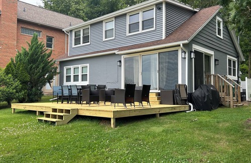This ~1,400sf 1950s summer cottage can accommodate medium-sized family, friends, or work gatherings and has been recently renovated into a year-round paradise. The first floor features an open floor layout for the kitchen/dining/living areas with floor-to-ceiling sliders providing spectacular lake views. There are two bedrooms on the main floor, one with a workstation, plus an updated full bathroom with a roomy walk-in shower. On the second floor, you will find two bedrooms, a separate dedicated office space with two workstations, and a half bath. Planning for a workcation? We’ve got you covered with high-speed wifi and three workstations to choose from.
