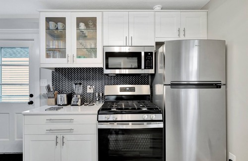 The open-concept layout seamlessly connects the living, dining, and kitchen areas, providing a spacious feel despite the cozy size. Prepare delicious meals in our fully equipped kitchen with state-of-the-art appliances, perfect for those who enjoy cooking or simply want to savor a home-cooked meal. Unwind in our thoughtfully designed bedrooms, each furnished with plush bedding, ample storage, a desk, and modern décor. A good night's sleep is guaranteed! Enjoy a full laundry room with an updated washer and dryer.