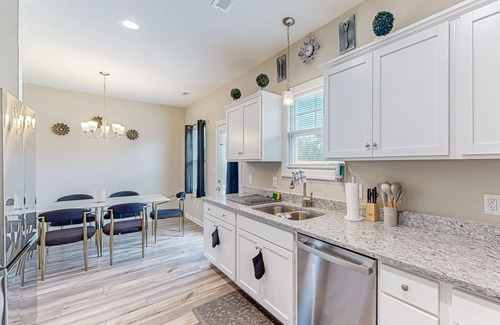 Inside, you'll find a well-equipped home with amenities such as Netflix streaming, a fully stocked kitchen with a coffee maker, dishwasher, and toaster, as well as a washer/dryer for your convenience. The house is designed for comfort and safety, with features like central AC, smoke detectors, and step-free access throughout the single-level home.