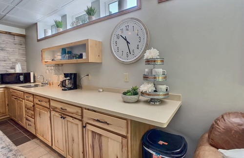 Open layout with Corian kitchen countertops and ceramic HEATED floor tile throughout. Roku 4K Smart TV. Separate entrance. Very clean and private. There is WIFI and YouTube TV. Nicely decorated. Enjoy the beautiful views, Weber grill and fire pit. All the amenities of home, all linens, coffee maker, pack n play, high chair, iron, blow dryer, full washer & dryer.