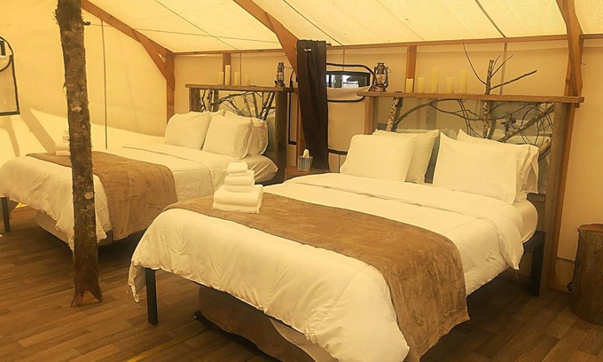 Well behaved pets are allowed in canvas glamping tents for additional fee.
