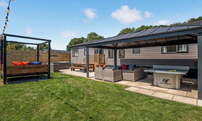 Upgraded for 2025, now featuring a tilt-and-turn gazebo over the hot tub. | Ski Chalet in Cottingham