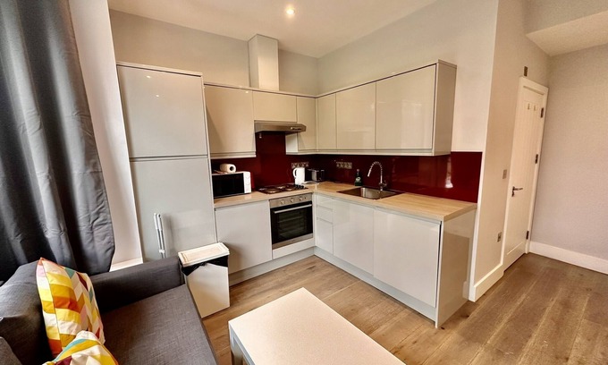 Indulge in the charming character of our pretty and cozy ground floor apartment nestled within Excel House, Hornchurch. This delightful retreat offers a serene ambiance and convenient access, just a stone's throw away from the station. Ideal for couples or solo travelers seeking comfort and convenience, our stylishly appointed space features a welcoming bedroom with a plush queen-sized bed for a restful night's sleep. The tastefully decorated living area exudes warmth, providing the perfect setting to unwind after a day of exploration. Whip up your favorite meals in the fully equipped kitchenette, dine in the cozy dining area, or refresh in the contemporary bathroom stocked with essential toiletries. Stay connected with high-speed Wi-Fi and enjoy entertainment on the flat-screen TV with cable channels. Complimentary tea and coffee add an extra touch of hospitality. With its convenient ground floor location, accessing the apartment is effortless for guests of all ages. Situated in the tranquil Excel House, you'll find yourself in close proximity to the station, making travel around the area a breeze. Explore the picturesque Hornminster Glen nearby or indulge in the array of shops, cafes, and restaurants within reach. Free on-site parking adds to the convenience, along with nearby public transportation links. Experience a memorable getaway in Hornchurch with our apartment at Excel House, where comfort, character, and accessibility await. Book your stay today!
