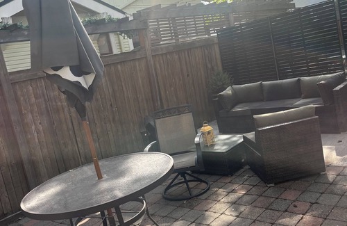 Freshly renovated 1BR lower-level suite in a Craftsman home, sleeps 4. Features spacious living/dining, flat-screen TVs, and private outdoor patio with BBQ. New apartment-sized kitchen with working island. Private entrance in Seattle’s desirable Upper Queen Anne, a walkable neighborhood with coffee shops, dining, shopping & farmers market. Minutes to downtown, Climate Pledge, cruise ships & arenas. Modern comfort in a classic setting.
