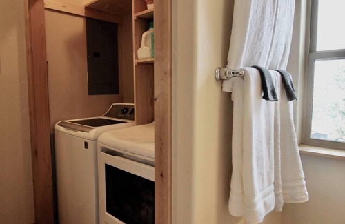Inside you'll find a spacious bedroom with comfortable King bed (the mattress is on the firmer side). The living room features a pullout couch, Roku Smart TV, and plenty of books. We have plenty of linens and extra sleeping pillows!