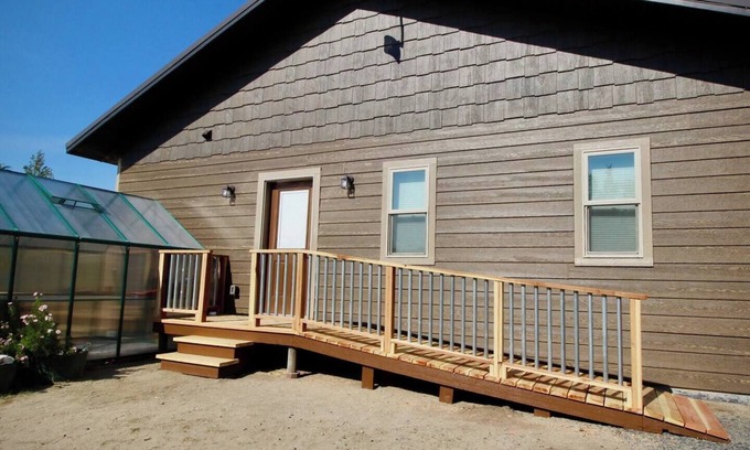 This home is part of a top and bottom duplex. Your unit -- the upper one -- has its entrance located on the backside of the hill and has its own private driveway and entrance. For those with accessibility issues, we have a ramp -- there are no stairs needed to access the home.