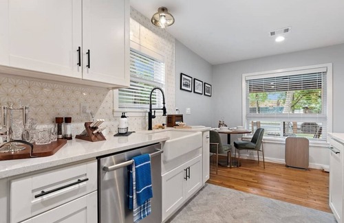 Recently fully remodeled upscale 3 bed 2 bath home, ready for your Austin getaway. High-speed internet. Air purifier. Quiet neighborhood with several great restaurants within walking distance and downtown is only minutes away! Located near the 7 bus line, you can be on the UT campus in 15 minutes or less. Or hey, just stay in and make use of the fully stocked kitchen and new BBQ grill on the oversized back deck. After dinner enjoy a cocktail next to the fire pit.
