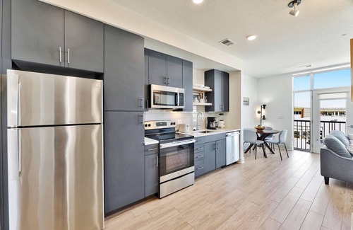 Discover luxury in this Upscale 1 Bedroom Apartment, perfect for business and leisure travelers. Stylish interiors, fully equipped kitchen, and exclusive access to an Infinity Pool with city views. Stay fit with our 24/7 Fitness Center! Enjoy our Luxer One Mail System for hassle-free packages. Cozy bedroom and modern bathroom. Prime location for easy city exploration. Book now for a seamless blend of comfort and sophistication!