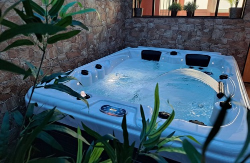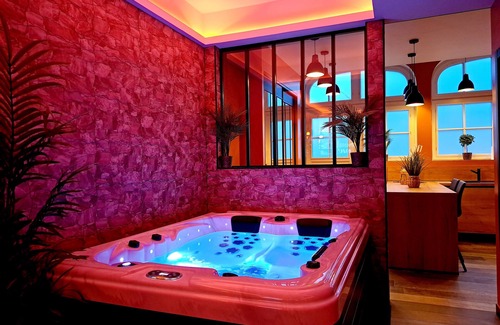Enjoy a getaway in this charming, romantic, and relaxing haven, featuring an infrared sauna cabin that offers a particularly pleasant sensation—that of the sun's rays on your skin. You'll appreciate this spacious, cocooning jacuzzi with its sleek design, ensuring complete relaxation thanks to its two loungers and its fully renewed water. For greater comfort, an ultra-comfortable queen-size bed and recliner chairs are available to our guests, as well as a fully equipped, high-end kitchen. To top it all off, there's a spacious walk-in shower for easy access, an office area, and a free covered and secure parking space. As a bonus, we offer a complimentary French breakfast to start your day off right!