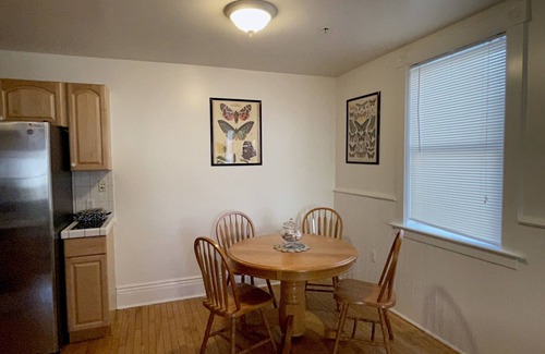 This cozy apartment is part of a renovated church building, and it is excellently located in Ann Arbor's Kerrytown district! Kerrytown is a historic, quiet neighborhood located just a few blocks north of downtown. It is a 30-minute walk to the Michigan Football Stadium, 5-minute walk to Zingerman’s and the Farmer’s Market, and a 10 minute walk to dozens of downtown restaurants and bars. We include free off-street parking. Ground floor/Handicap accessible.