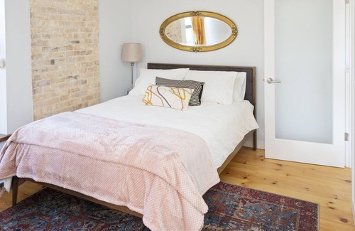 This unique 2 bedroom apartment is located on the second floor of one of Fort Atkinson's landmark buildings. Enjoy the beautifully designed space with attention to detail, pairing historic features with modern amenities. There is a queen bed in each bedroom, a large sofa, and a rollaway bed for additional guest.