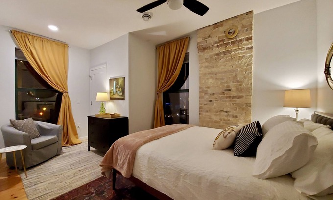 Best-rates for the Upscale downtown apartment starts from $135 per night with includes TV, Security/Safety, Sports/Activities, Wellness Facilities, Fireplace/Heating, Child Friendly, Kitchen, Parking, Bedding/Linens, Entertainment, Internet, Laundry, Air Conditioner with all other amenities. Perfect for Weddings is committed to ensuring every guest experiences a comfortable and extraordinary stay, whether planning a romantic getaway, a honeymoon, a pet-friendly stay, or celebrating with the entire wedding party.