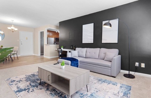 Stay in style in the eclectic city, ranked among the "Best Places to Live" by Money Magazine—Raleigh. This classy 960-square-foot (~89-square-meters) 2-bedroom, 1-bathroom apartment features 1 King Bed & 2 Plush Full Beds for your comfort, Lightning Fast Wifi, a Separate Workstation, a Fully Equipped Kitchen, and other Luxury Amenities—specially designed for your longer length stays! Step out to a lively neighborhood—mins from Crabtree Mall, steps to restaurants, cafés, bars, and shops!