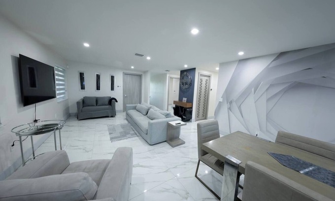 Experience elevated coastal living in this stunning second-floor- 3-bedroom, 3-bath bayshore luxury Guests House Frontal seating area is part of the rental. Frontal seating area with water view and the second floor living area. You will be provide a keypad code to enter the house. Host is available in person if requested by guest. 2nd floor Bayshore Luxe Guests House is located in Miami, just 5.8 miles from Adrienne Arsht Center for the Performing Arts and 8.3 miles from American Airlines Arena. This property offers access to a balcony, free private parking, and free Wifi. Bayfront Park is 8.8 miles from the villa and Miami Beach Convention Center is 9 miles away. Offering a terrace and sea views, the spacious villa includes 1 bedroom, a living room, flatscreen TV, an equipped kitchen, and 3 bathrooms with a shower. Towels and bed linen are featured in the apartment.The property has an outdoor dining area. Holocaust Memorial is 8.8 miles from the villa, while Bayside Market Place is 8.8 miles away. Miami-Opa Locka Executive Airport is 8.7 miles from the property.