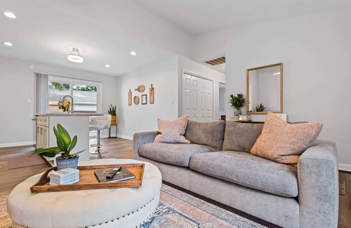 This modern single-level home features 2 beautifully designed bedrooms with high quality linens, extra pillows and blankets, and room-darkening shades so you can enjoy a restful stay.