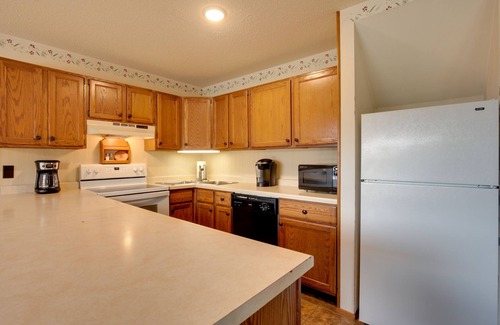 KITCHEN: Stove/oven, microwave, dishwasher, refrigerator, dishware/flatware, drip coffee maker, Keurig, toaster, breakfast bar