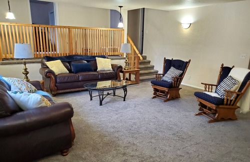 This spacious house has four bedrooms. One king, 1 queen, 1 full and 1 with a bunkbed and 3 single, comfy gel mattresses. The large living room is a great place for the whole gang to hang out and play games, put puzzles together or watch a great movie. The kitchen is perfect for those inspired to cook, offering a built-in cutting board and marble block originally placed for candy making. There is also plenty of space to make cooking a group effort...or you can let the Sweets n Eats crew below do the cooking! The dining room has a large table to accommodate everyone with 2 additional leaves located in the "hallway" across from the bathroom. Oddly, the laundry room is also the entry way, but it provides a bench to sit to remove your shoes and lots of space for coolers and extra supplies. There is, however, only 1 bathroom (with an amazing black toilet installed by a previous tenant) so timing is everything!