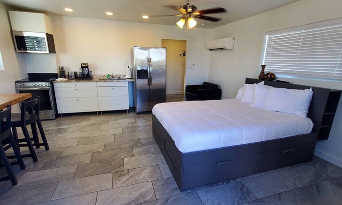 No chores list, no silly rules, no curfews, and you are valued as a guest. Seriously we treat you as if you are the temporary owner, not free labor that needs monitoring. Close to airport, three major freeways, and downtown Phoenix. These are new units built in 2019 and are located behind my residence. They are private studios with a bathroom and kitchen, stocked with all your needs for short-term stays. I make it my goal to give everyone their personal space, but I also encourage socializing.