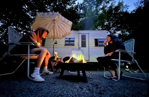 Our Boheme Retreat vintage campers are grouped together so that your near by neighbors are also vintage campers. At Boheme Retreats we offer a more elevate camping experience. We hope you come ready to enjoy our take on glamping, in a rustic setting where you are sure to connect with nature. The camper Shirley sleeps 3 adults. 1 additional child can be added and a floor sleeping mat provided at your request. We allow 1 pet in Shirley. Inside the vintage trailers you'll find : rv full size bed, and a rattan daybed. It also comes with a kitchen, refrigerator, AC unit, fresh linens, towels, bathroom with shower, toilet, sink, tableware and french press. Camper is hooked up to electric and water. Septic tank is dumped by campground as needed. Outside seating, fire pit and small grill is provided. Hiking is in walking distance with a small waterfall and the Willowemoc creek on the property is a popular trout fishing stream. You'll definitely fall in love with Livingston Manor!