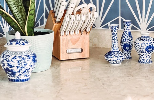 The guesthouse is attached to our family home, but has two private entrances- the front door and side sliding glass door, both with their own private patio spaces! It truly feels detached from our home with the way it is laid out.