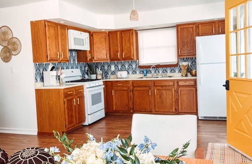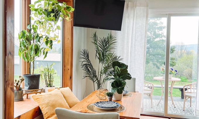 Enjoy this bright and colorful one bedroom, one bathroom space with a full kitchen, dining space and living area on one acre of land. Sit outside on the deck with rolling hills surrounding you, or enjoy a glass of wine by our fire pit. We can't wait to host you!