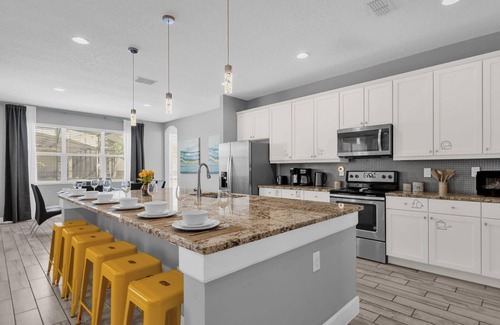 Gather the whole crew family, friends, or team for a stay in this expansive 13-bedroom, 10-bathroom home in Sonoma Resort. Just minutes from Disney, shopping, and dining, this group-friendly retreat offers space to connect, cook, and relax in style. While the private pool and hot tub are currently unavailable, guests have full access to the resort’s beautiful shared pool, hot tub, and clubhouse amenities.