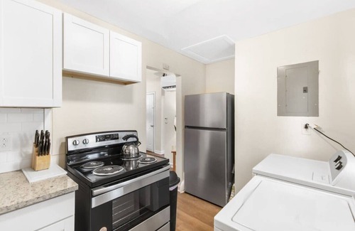 **Please be aware that access to your unit requires climbing no matter where you park. From the parking lot, guests have to use a smaller set of concrete stairs, and from the street, guests have to use a full flight of stairs. ** Welcome to our inviting 1 bedroom home, designed to accommodate up to 4 guests comfortably! Step inside and immediately feel at home in the cozy living room, complete with a charming dining nook. The adjacent fully equipped kitchen is ready for your culinary adventures. Down the hallway, discover a full bathroom and a bedroom adorned with a luxuriously comfortable king-size bed. While we truly believe our neighborhood is wonderful, we understand that individual preferences may vary. If you anticipate any discomfort related to the neighborhood, we kindly ask that you consider alternative accommodations. In the event of a cancellation after arrival, our moderate cancellation policy will be in effect. Your comfort and satisfaction are of utmost importance to us, and we are dedicated to providing you with an enjoyable stay. We sincerely appreciate your understanding and eagerly look forward to hosting you in our home. ***A pack 'n play/travel crib is available upon request.***
