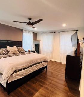 Uptown in 6 Mins - Game Deck offers accommodations in Charlotte, 8 miles from Bank of America Stadium and 8.2 miles from Mint Museum of Craft Design. Guests staying at this vacation home have access to a patio. The property features a 24-hour front desk and free Wifi is available throughout the property. The air-conditioned vacation home consists of 3 bedrooms, a living room, a fully equipped kitchen with a dishwasher and a coffee machine, and 3 bathrooms with a bath and a hair dryer. Towels and bed linen are offered in the vacation home. The property has an outdoor dining area. Outdoor play equipment is also available at the vacation home, while guests can also relax in the garden. Blumenthal Performing Arts Center is 8.6 miles from Uptown in 6 Mins - Game Deck, while Spectrum Center is 8.9 miles from the property. Charlotte Douglas International Airport is 10 miles away.