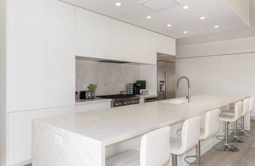 Gourmet Kitchen & Impressive Island: At the heart of this loft is a show-stopping 17-foot white quartz kitchen island, perfect for culinary enthusiasts and entertainers alike. It seats up to six guests and is equipped with top-of-the-line stainless steel appliances, making it ideal for hosting dinner parties or enjoying a cozy breakfast. Whether you’re a gourmet chef or a coffee lover, this kitchen is designed to inspire.