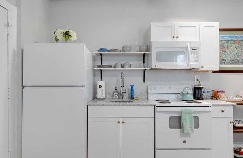 ⭐Kitchen: fully stocked kitchen. Electrical stove and oven, toaster and full-size refrigerator. We provide pots and pans, silverware, etc.