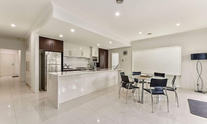 Urban apartment has home away from home comforts with 3 bedrooms, 2 bathrooms and open plan living, suitable for short or extended stays. Holiday or corporate guests will find the location ideal. Fully self contained Urban Apartment has 3 bedrooms with pillowtop queen beds, 2 bathrooms, spa bath, full kitchen and laundry facilities, including oven, dishwasher, pots n pans, cutlery and crockery etc, washer and dryer, large flat screen TV, comfy leather couch and double lock up remote garage. All linen and towels are provided.