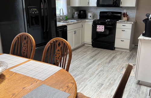 There is a sunroom for your inside enjoyment and a deck for outside. There is plenty of room for yard activites such as cornhole and other activities. There is access to a grill for the "grill-cooks" and a partially fenced yard. Guests have access to all spaces in the home, excluding the garage. There is plenty of parking in the driveway to accommodate multiple cars. You're sure to have a pleasant stay.