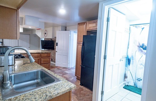 This apartment has a separate entrance and features 1 king bed, 1 full bed, and 1 twin bed. With a cozy living room and a futon for extra space, guests can relax and unwind. Enjoy the convenience of amenities like WiFi, a washer/dryer, and Roku-ready TVs. A great place to call home base while you're away. We hope you enjoy your stay!