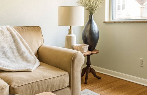 Welcome to your stylish St. Louis stay! Located just minutes from top attractions like the Arch, Forest Park, and Busch Stadium, this cozy and modern space offers comfort, convenience, and charm. Perfect for couples, families, solo travelers, or business trips. Enjoy fast Wi-Fi, a fully stocked kitchen, and free parking. Outside, unwind on your private large patio featuring cozy seating, a firepit, string lights, a hammock, and dining table—perfect for refreshing mornings or relaxing evenings .